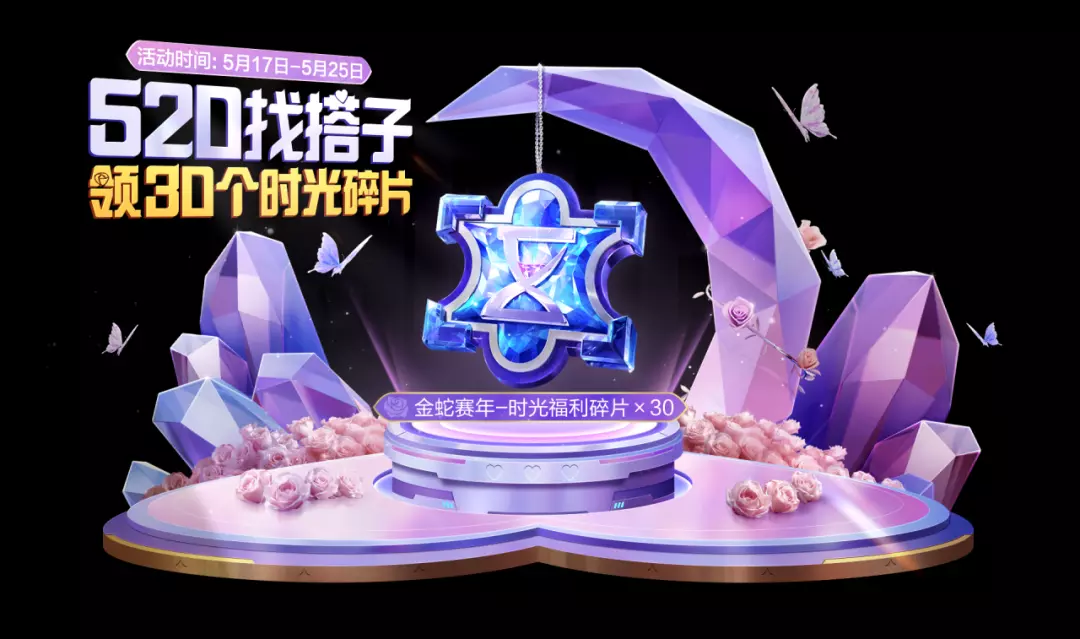 5月17日-5月25日,邀好友合建520场景,可以实时共享搭建进度,30个时光福利碎片奖励更快到手!可在福利商店兑换心仪的套装与枪皮肤等道具。