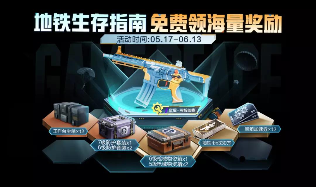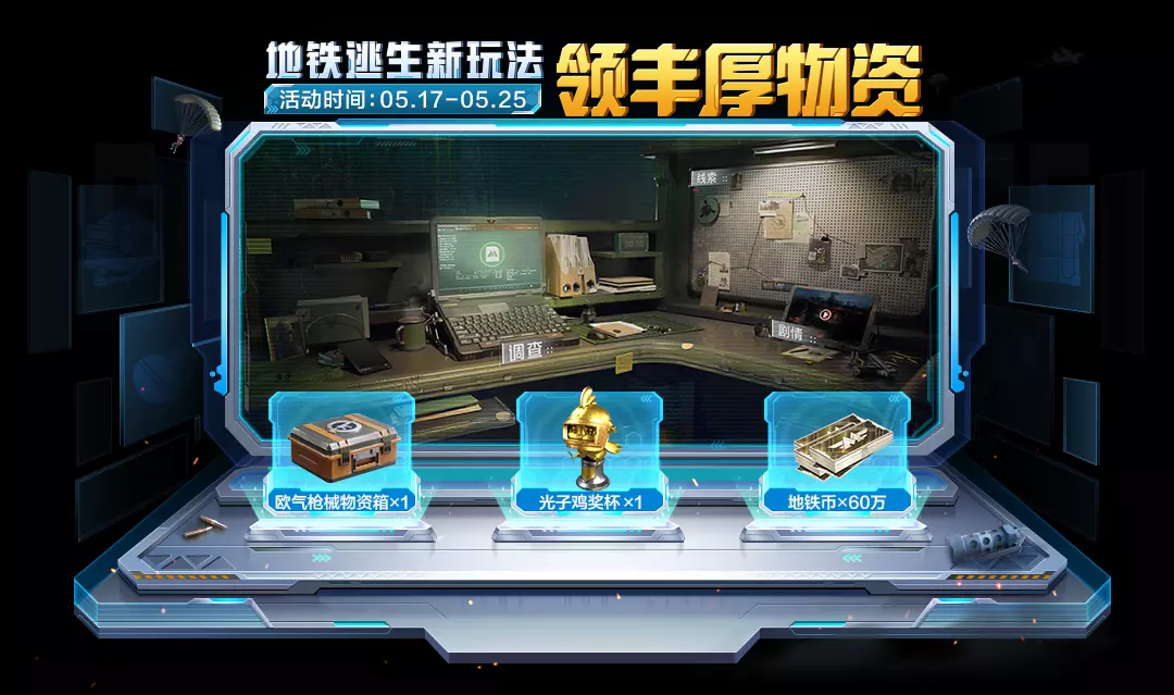 5月17日-5月25日,完成地铁逃生的悬赏任务,领欧气枪械物资箱、光子鸡奖杯等地铁物资!