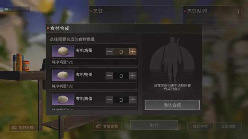 幸存者们可以将一定数量的普通食材