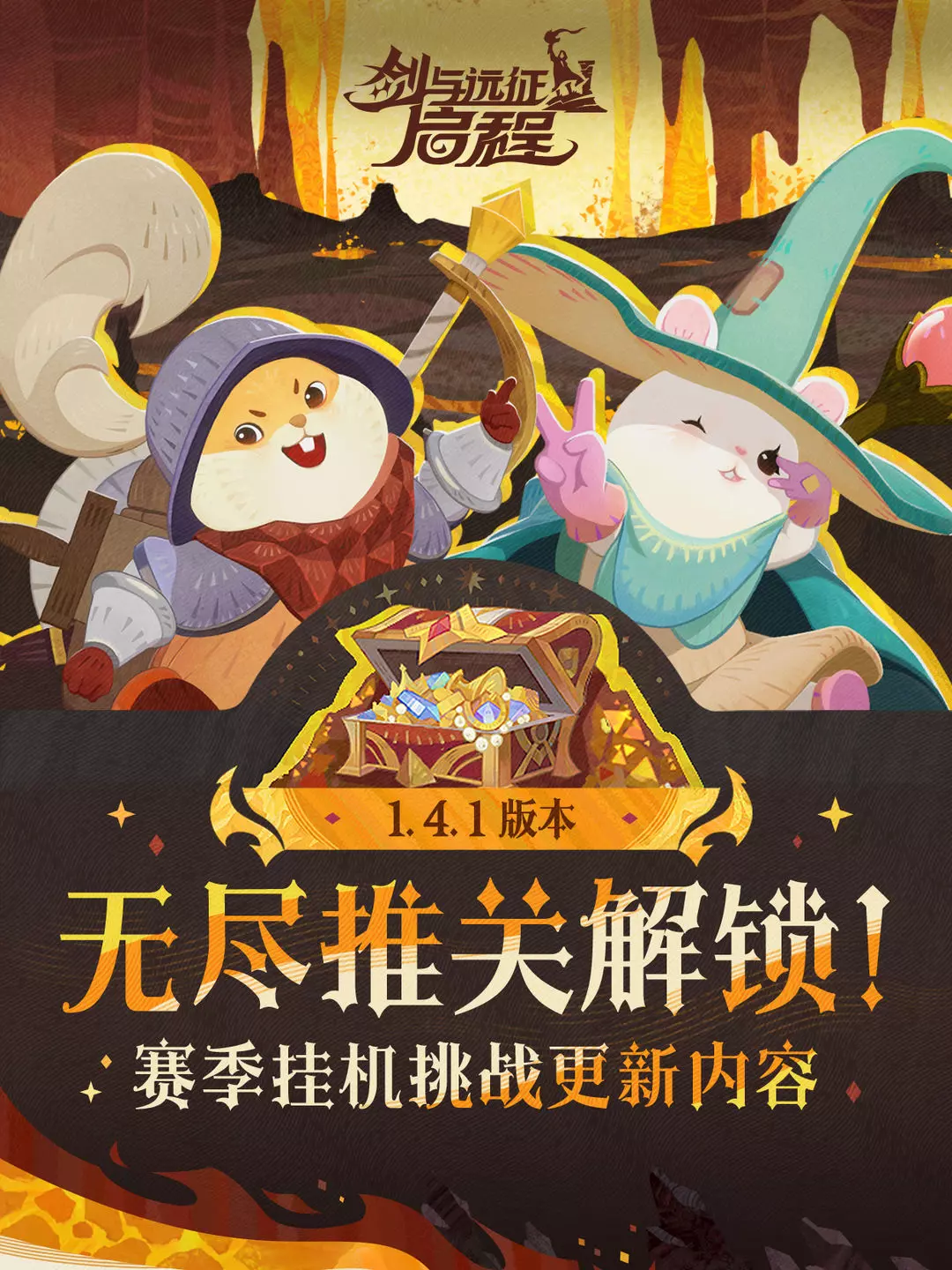 在「渊火龙诗」赛季中,我们将更新赛季挂机挑战,推出「无尽推关」模式。