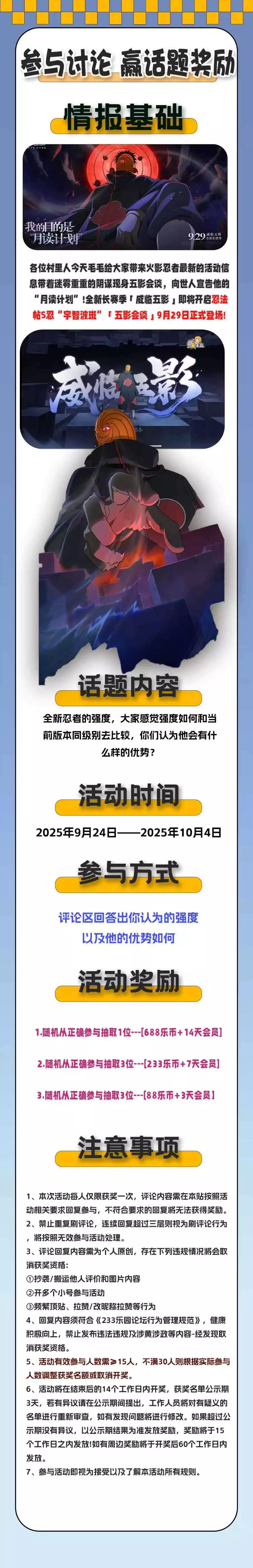 4、回复内容须符合《233乐园论坛行为管理规范》,健康积极向上,禁止发布违法违规及涉黄涉政等内容,一经发现取消获奖资格。