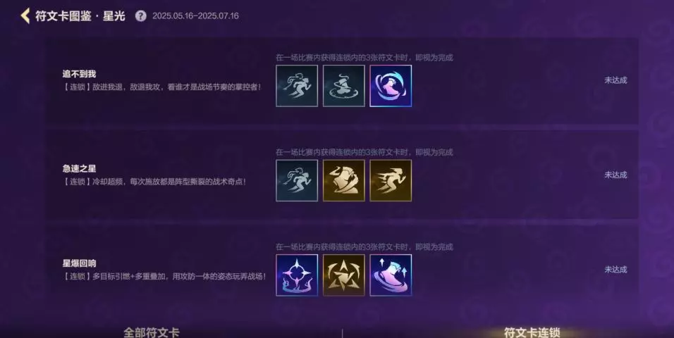 此外,进入【符文卡图鉴】页面后,点击右下角【符文卡连锁】,即可查看更多符文卡连锁效果与当期符文卡推荐搭配~