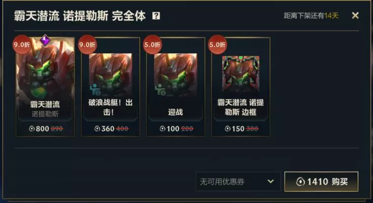 同时,即日起,截止至5月29日23:59,召唤师还可以1410点券的优惠价格分别购入霸天潜流 诺提勒斯 完全体礼包和霸天重坦 茂凯 完全体礼包,礼包内包含9折优惠的各英雄皮肤与精英姿态,更有5折优惠的各皮肤对应姿态和皮肤边框。