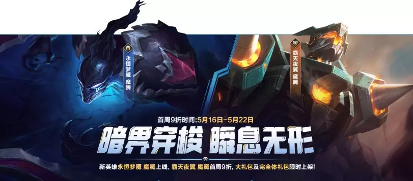 暗幕垂落,梦魇携惧吞噬光明。新英雄永恒梦魇 魔腾现已正式上线峡谷,相伴而来的还有其伴生皮肤霸天夜翼 魔腾。即日起,截止至5月22日,首周享有折扣优惠!召唤师可前往商城,以800点券的优惠价格拿下新皮肤~