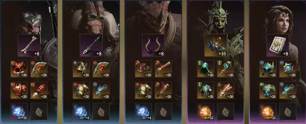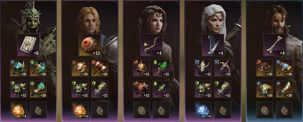 三名蓝卡输出英雄均使用着精炼等级较低的史诗品质神器