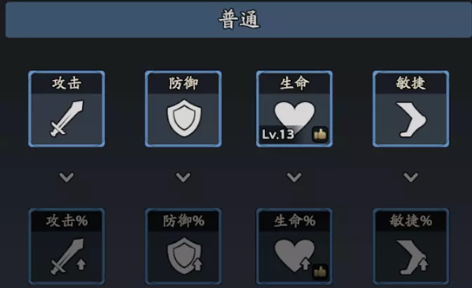 研究:生命、攻击、敏捷、攻击百分比、敏捷百分比、暴击、爆伤、命中、闪避、生命百分比。