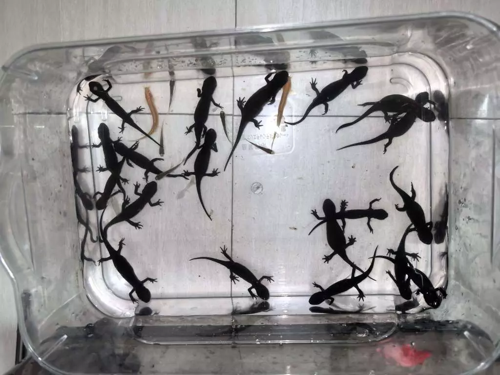 给他们换水的时候忽然发现有几只长得好肥的,脖子都吃没了胖死了