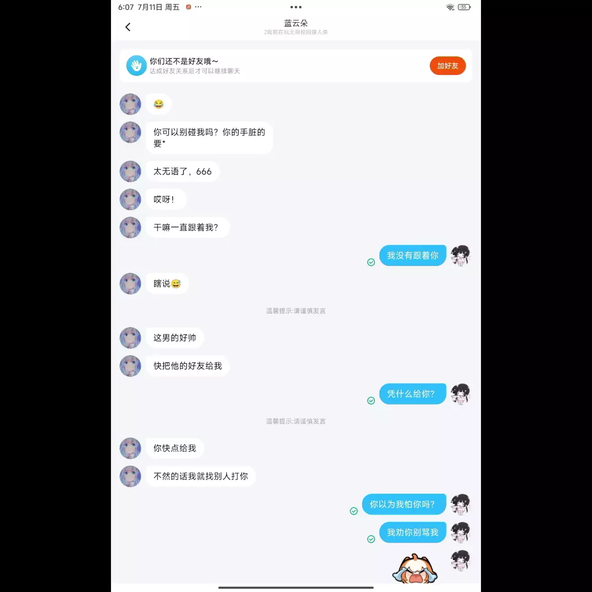 嘤嘤嘤,我好友暑假过完就要退游了