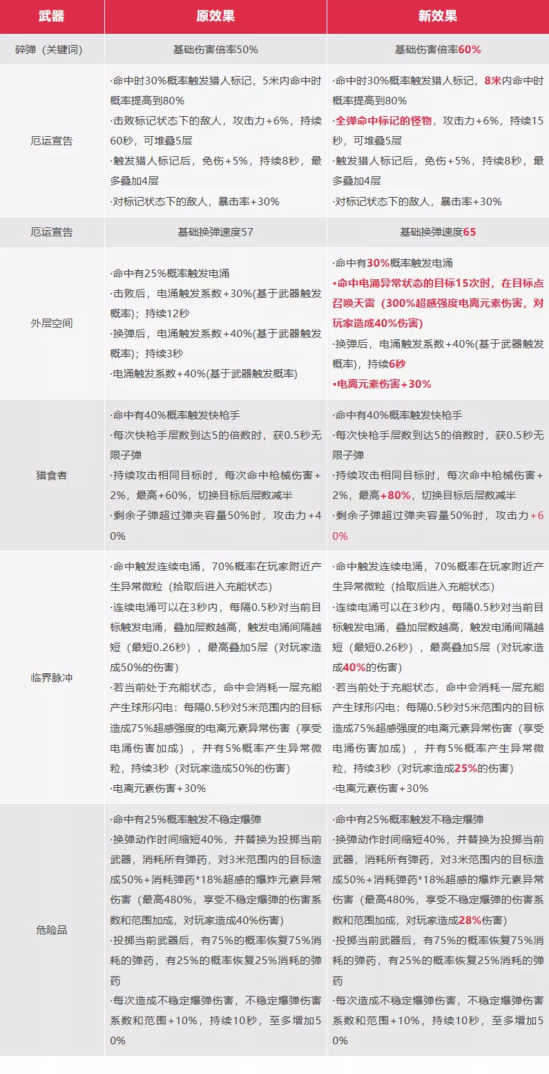 本次调整主要关注部分对单枪械和pvp枪械的表现,更新后我们会持续关注对应流派的实战表现和使用率,并评估是否在后续进一步调整。