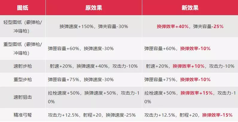 在调整的具体数值上,由于不同枪型替换精校图纸后的效果不同,我们会尽量做到本次调整前后的枪械换弹时间保持一致。