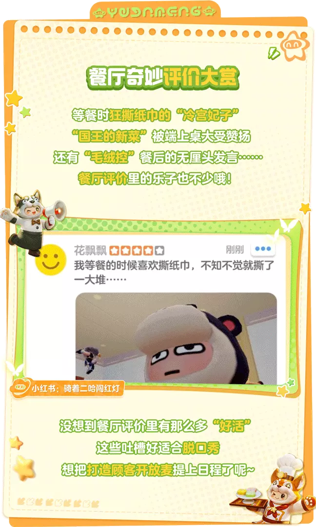 星妹看到,已经有不少星宝开门营业啦!还记录了自家餐厅发生的趣事呢!“小吃店”初体验、收益小技巧、“冷宫”顾客的“发疯”评价、更有“邪恶厨师”制作“暗黑料理”?!惊喜这么多!星宝可得来看看~