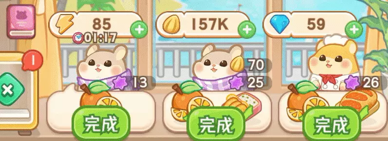 从上往下看,首先映入眼帘就是合成订单的部分,简单来说就是店长们可以通过操作下方棋盘里的合成元素组合成订单上需要的物品,符合要求的订单会显示“完成”按钮,我们点击之后提交对应物品即可完成订单,获得研究点部分订单还能获得道具、钻石、瓜子等奖励。