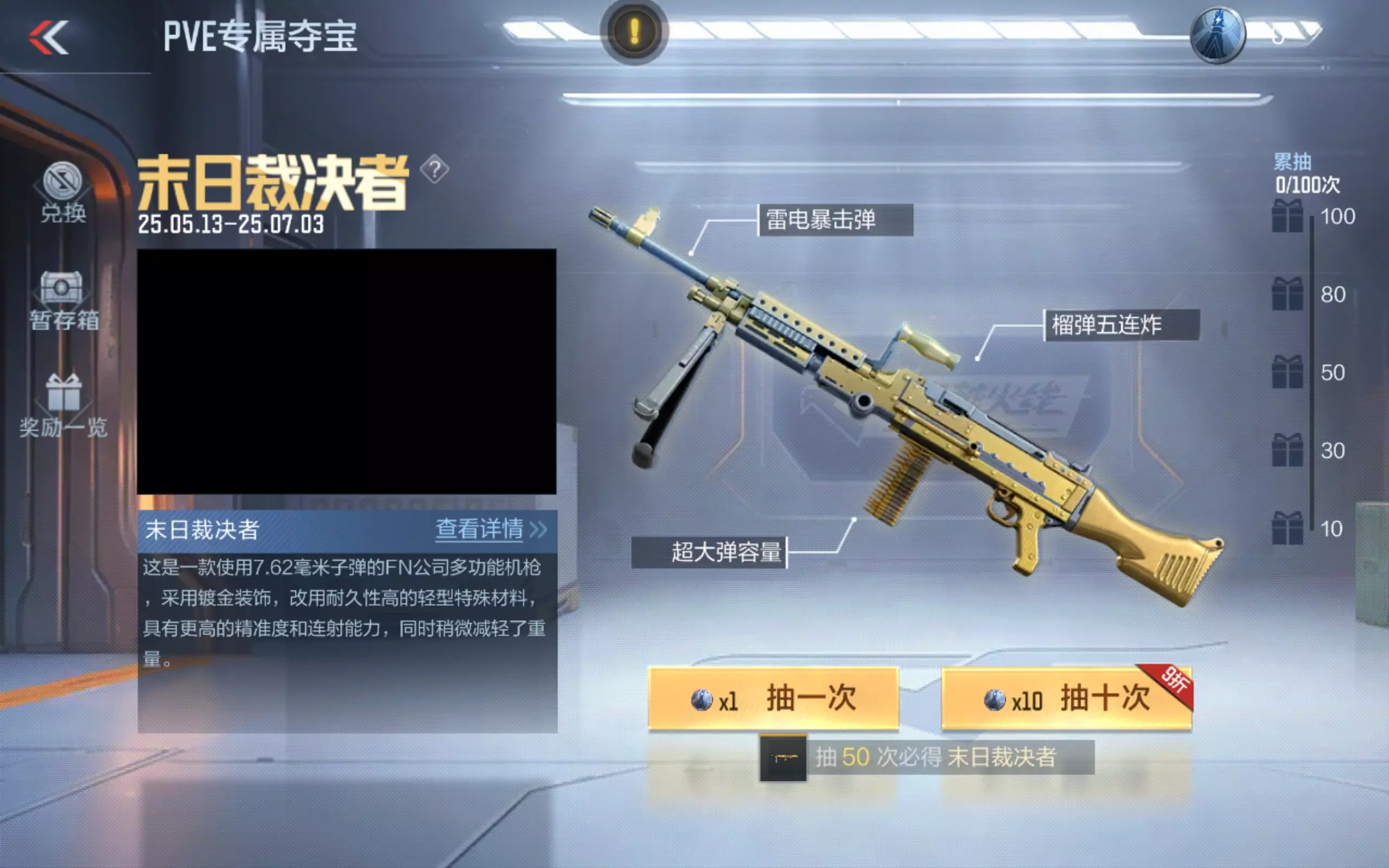 PVE 玩家的狂欢时刻到了!即日起至 7 月 3 日,末日裁决者、巴雷特-坦克堡垒、激光毁灭者III、AN94-超新星四大神器限时返场!无论是挑战模式刷分,还是生化模式守点,这些武器都能让你战力倍增。活动刚开启,抓紧时间参与夺宝,抢占先机!