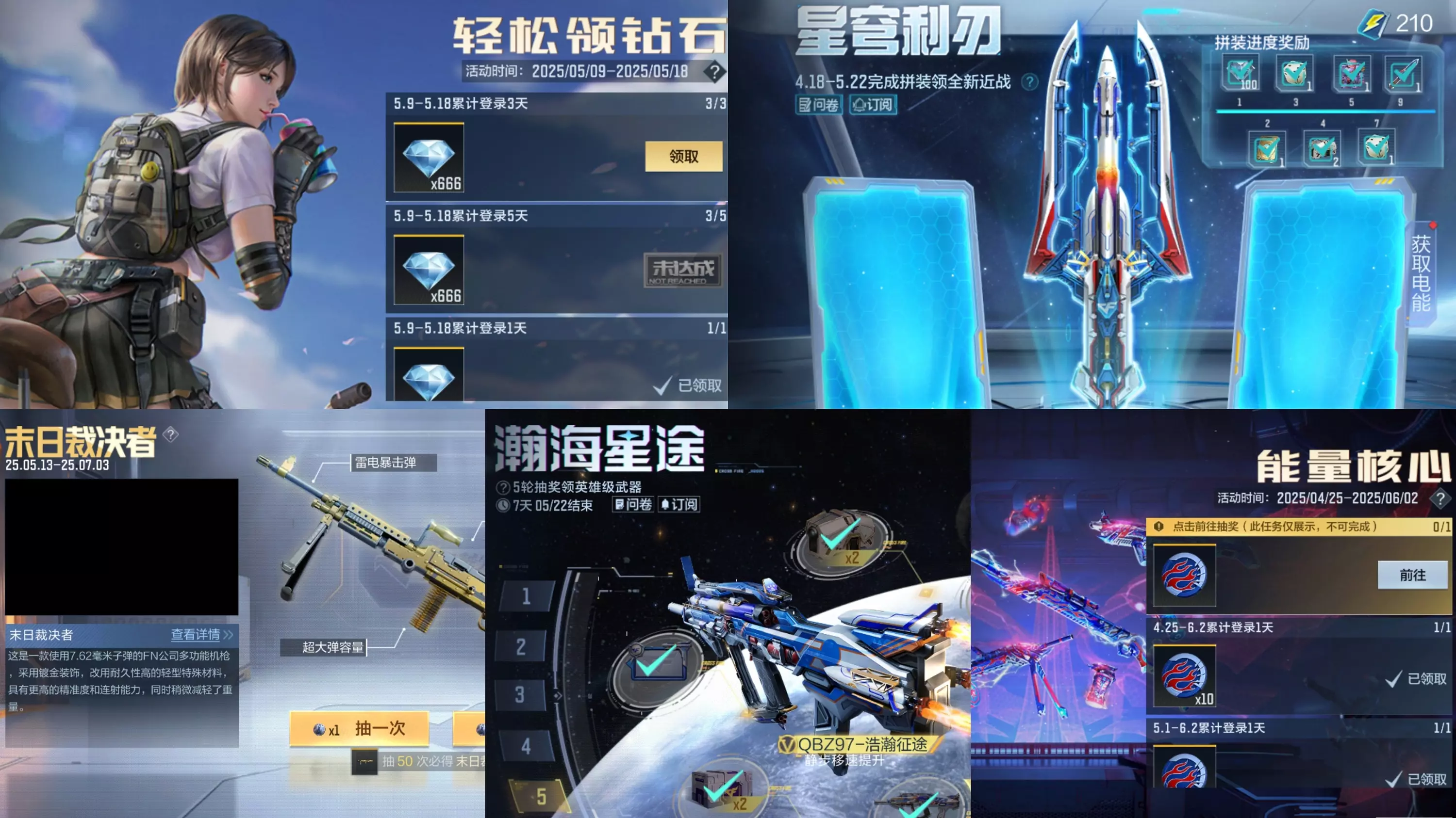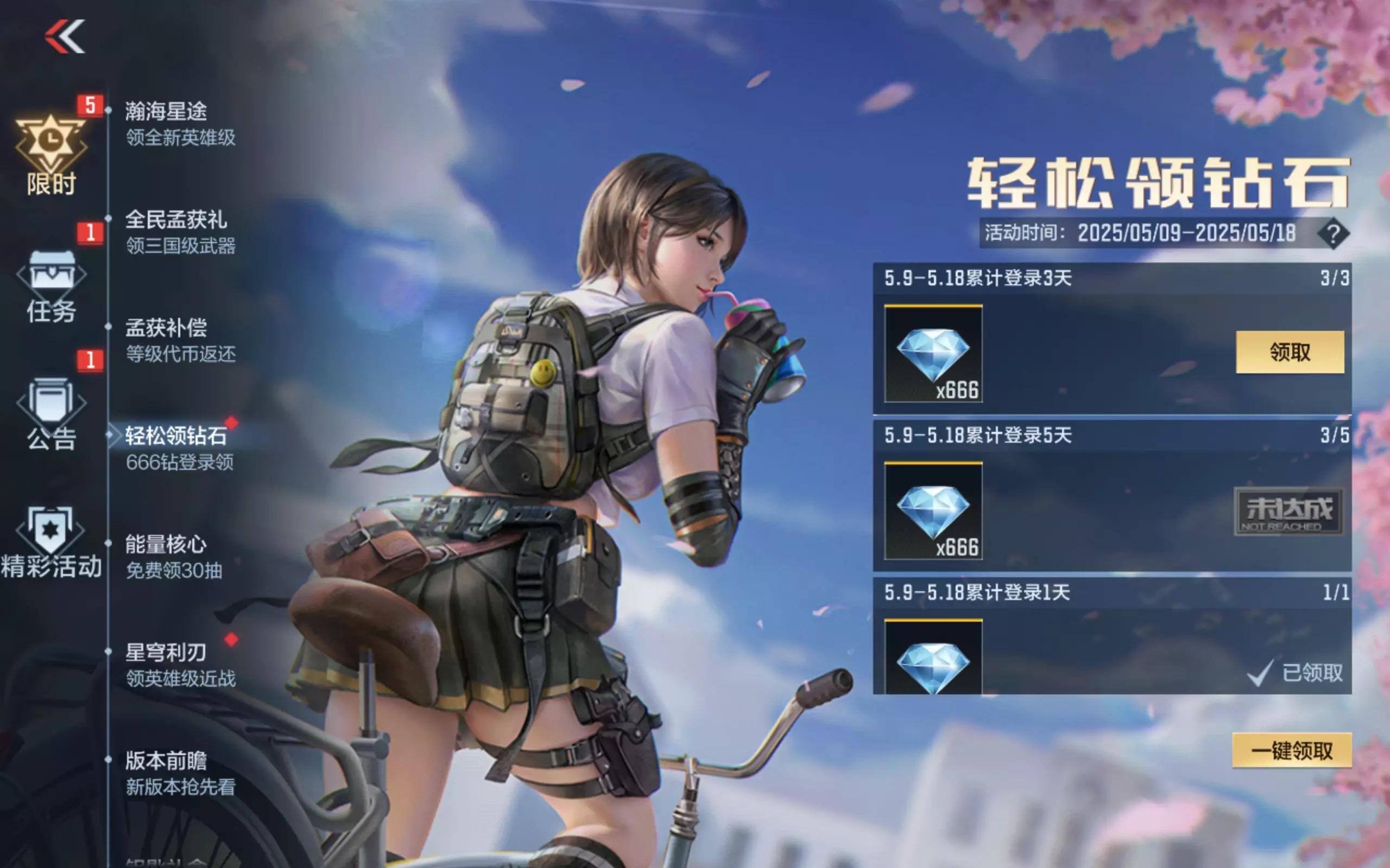 五月中旬福利全面爆发,钻石、武器、道具应有尽有!尤其是即将结束的 “轻松领钻石” 活动,务必完成任务拿满 2798 钻石。后续还有更多精彩活动陆续上线,记得持续关注游戏内公告,祝各位 CFer 把把 ACE,福利拿到手软!