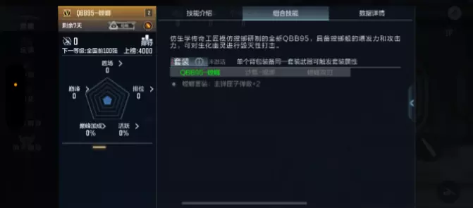 集齐QBB95-螳螂、沙鹰-螳螂以及螳螂双刃可以激活螳螂套装属性:主弹匣子弹数+2,增加武器的续航能力。