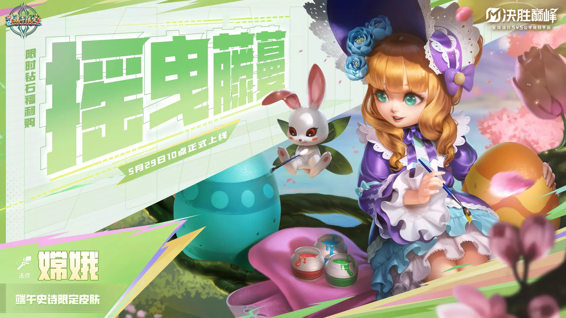 5月29日-6月29日,嫦娥端午限定史诗皮肤「摇曳藤蔓」将正式上架【商城】,售价880限时钻石,