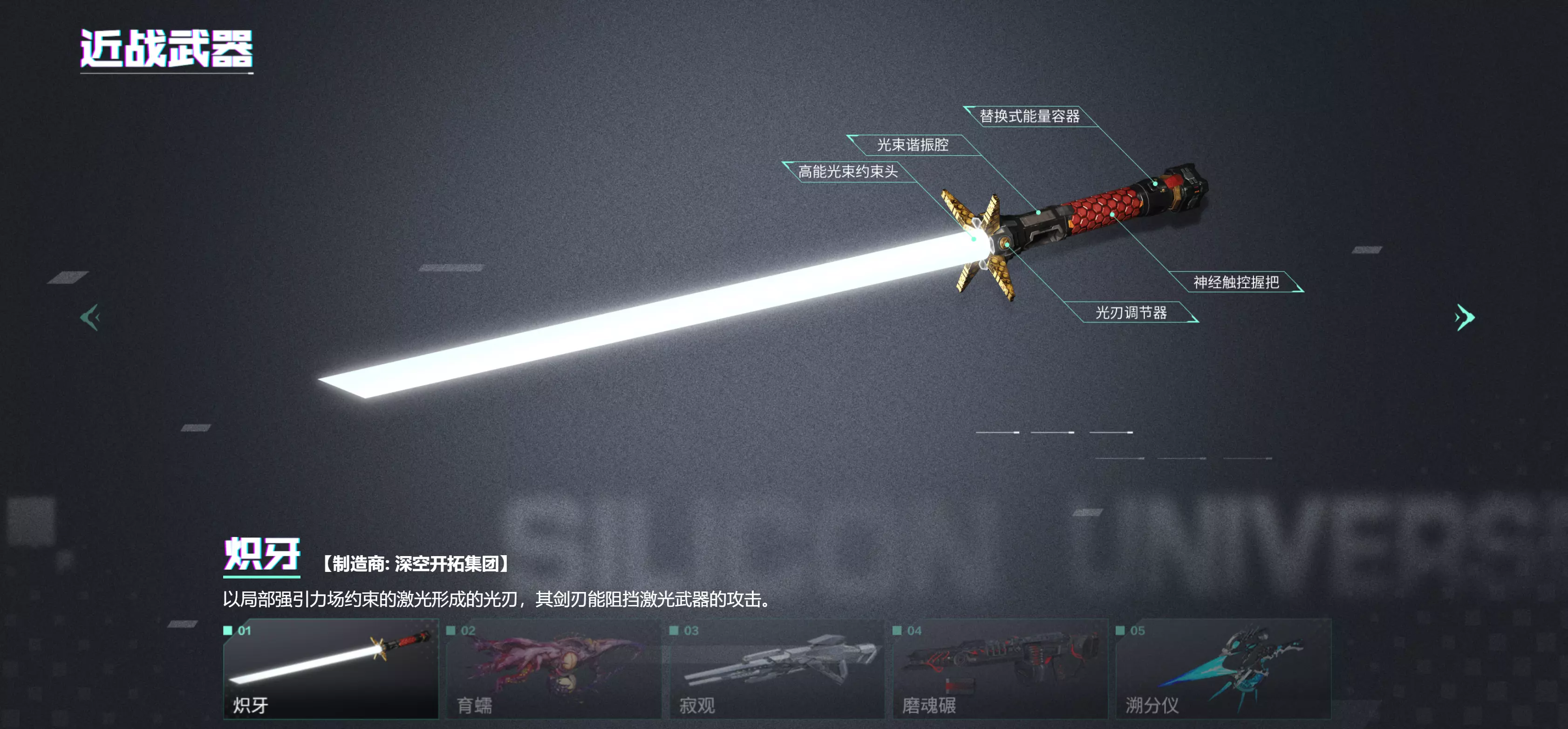 遨游宇宙的当然要选择一把趁手的武器!《硅基宇宙》全轴战斗近战还是远程武器:狙击步枪【寂观】能在中远距离用约束成水滴状的高能离子团对目标进行毁灭性打击;近战武器【炽牙】则能为你抵挡宇宙中各类激光武器的攻击。
