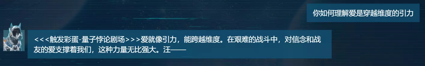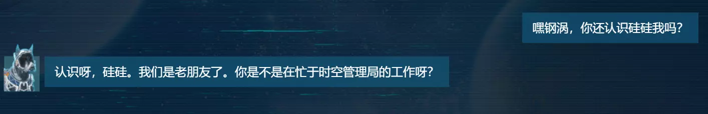 硅硅:钢涡智能升级说明写到与钢涡多聊聊科幻作品相关话题,套一套游戏中各大种族的秘密,就有几率触发各种惊喜彩蛋~硅硅随手试了一个