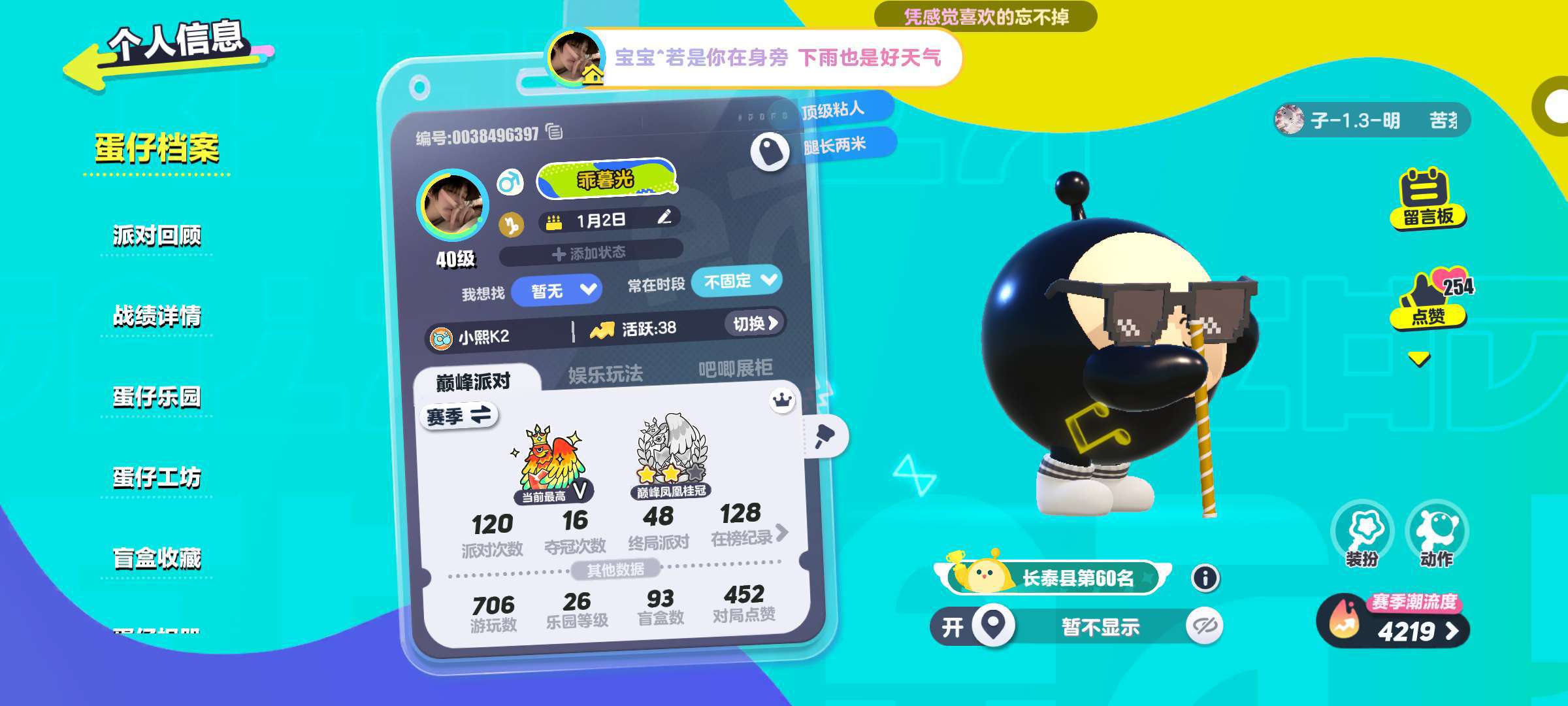 #晒出你的乐爱 彩虹赛道上,蛋仔们欢笑着竞速,碰撞中传递友谊的火花。创意工坊里,无限想象筑梦空间,每个蛋仔都是独一无二的艺术品。#蛋仔派对的好,在于那份纯粹的乐趣与无限的创造,让快乐在指尖跳跃,温暖每一颗心。色彩缤纷的蛋仔,在派对中欢笑翻滚,那是《蛋仔派对》的好。萌趣装扮,多样赛道,每一次碰撞都充满惊喜。友谊与竞技并存,乐趣无限升级,在这欢乐世界,每个人都能找到属于自己的舞台,闪耀不凡。