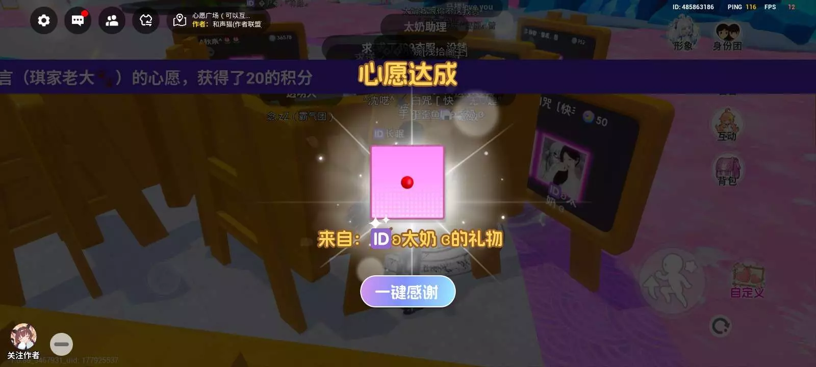 大家快去玩心愿广场吧里面会有人送礼的!