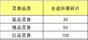 在游戏中,通过参与各种活动,我们可以获得灵兽碎片随机&自选宝箱,灵兽可由一定数量的对应灵兽碎片合成。