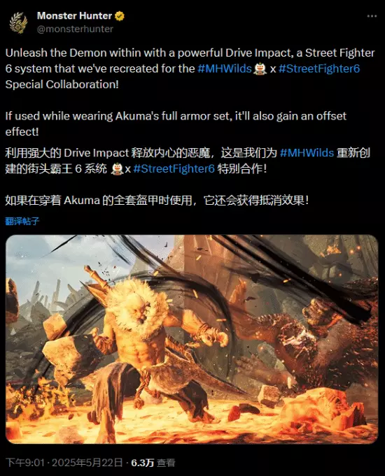 近日,《怪物猎人:荒野》宣布了与《街霸6》联动的消息,官方在社交媒体上放出视频表示:豪鬼的战斗动作确实能产生伤害!