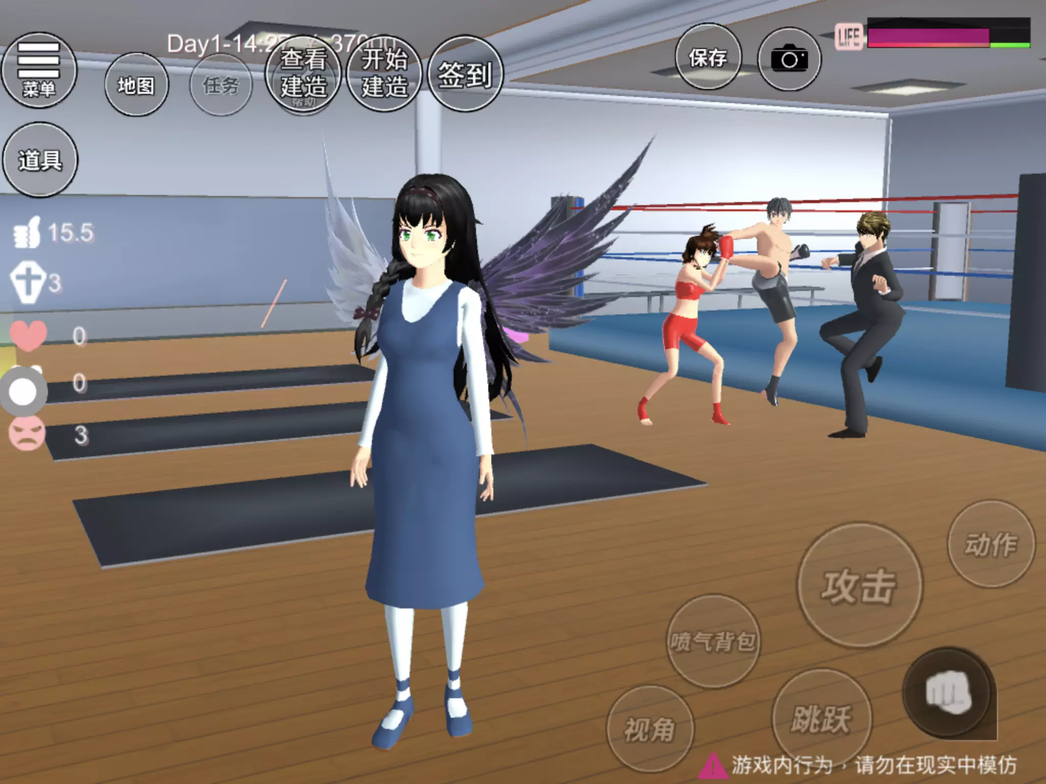 你看我把他们三个都给招惹了,再把他们三个的引过来一起打。是不是超搞笑?我的攻击动作是英文版的