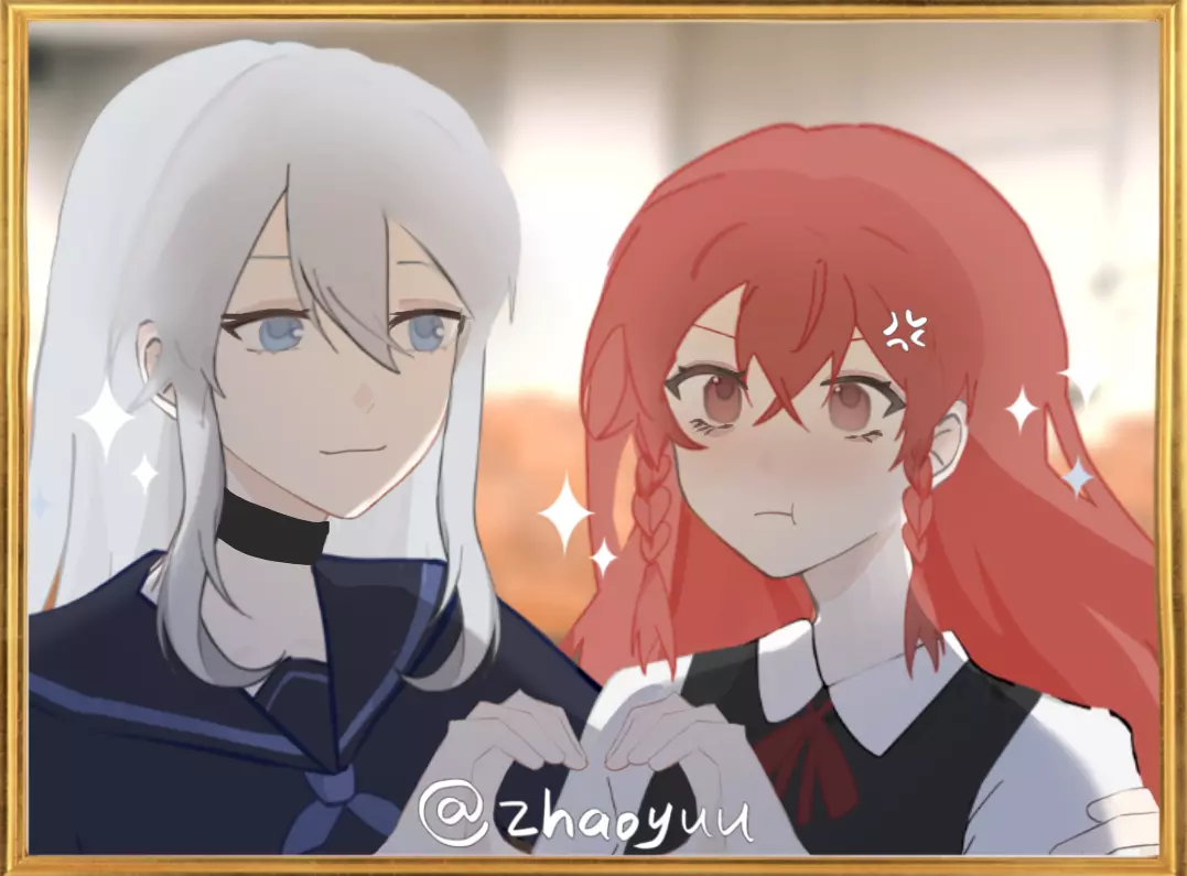 “莉莉,笔芯”“哈?我,我才不要和你…”“黑色的有吗”“有……”“莉莉,想什么呢”“没,没什么…”伊莲把莉莉丝拉到怀里“你,你干什么!?”“莉莉啊,你就那么想和我比心亲亲抱抱吗?”“哈?我怎么会想和你这种人”“别管了,比心”咔,伊莲拍下了照片