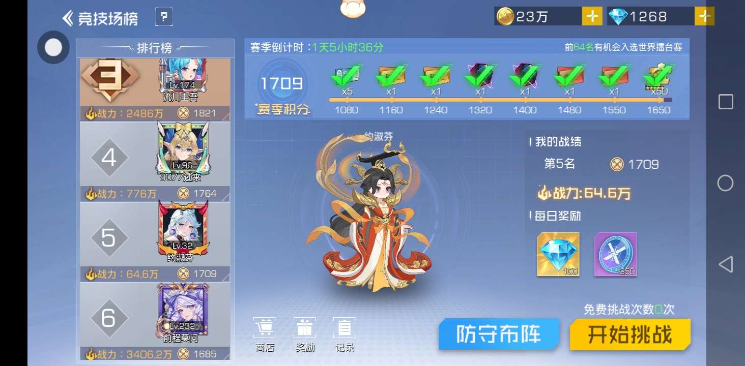 竞技场第五名了!