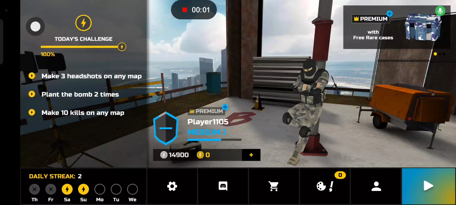 一款第一人称射击游戏,玩家必须使用小工具并战术性地游戏以清除目标。与朋友在线玩或离线单人游戏。游戏特色:-3 个关卡,有随机陷阱和敌人- 近战中的高动作射击- 装载系统,众多枪支和课程可供选择-倾斜- 速降- 爆破电荷、闪光弹、防暴盾牌等小工具- 聪明的敌人 AI-盟友可在离线模式下指挥- 在线多人游戏和私人房间