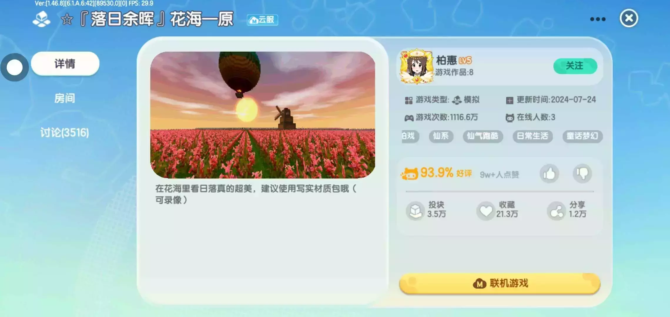 还在苦寻《迷你世界》里的绝美打卡地?“落日余晖”花海地图绝对是不二之选!它将烂漫花海与温柔落日完美融合,打造出一个让你少女心爆棚、流连忘返的梦幻世界 ,不管是独自赏景、好友同游,还是拍照达人寻找素材,这里都能满足🎨好啦💒今天就到这里 我们下期再见🌻拜拜啦 💗#初级班成长日记#申请精华#月榜#迷你世界社区共建#阿茸来啦#茸茸茸茸茸茸#信息未回致歉呀#申请周刊 @森璃🍃 @沐筱兰