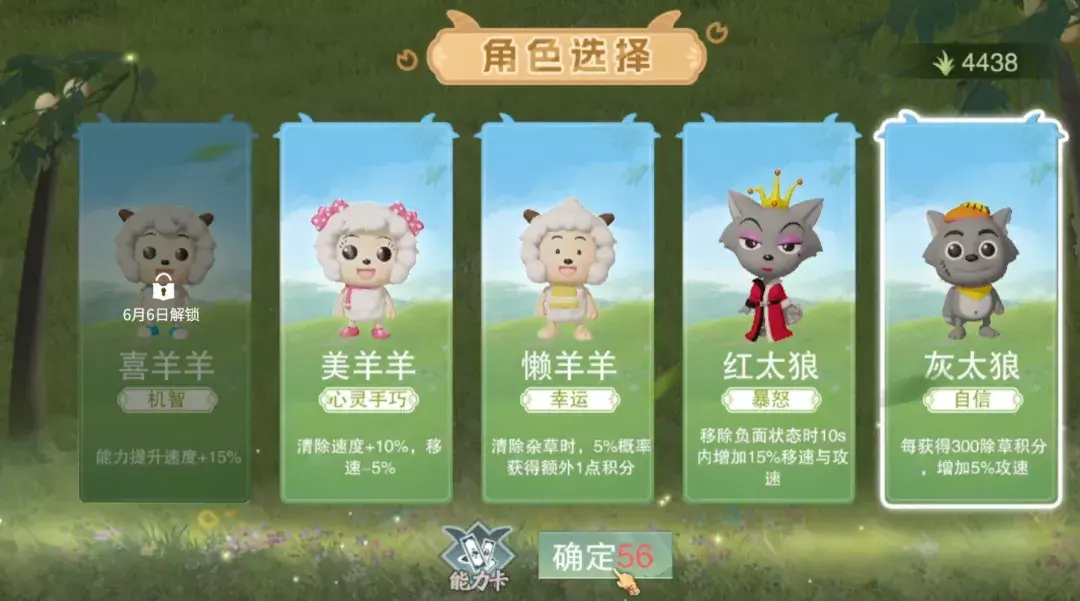 在玩法中,少侠将能够化身狼羊天团的五大主角——喜羊羊、美羊羊、懒羊羊、红太狼、灰太狼。他们各有本事,能够帮助少侠在草原除草工作中大放异彩!