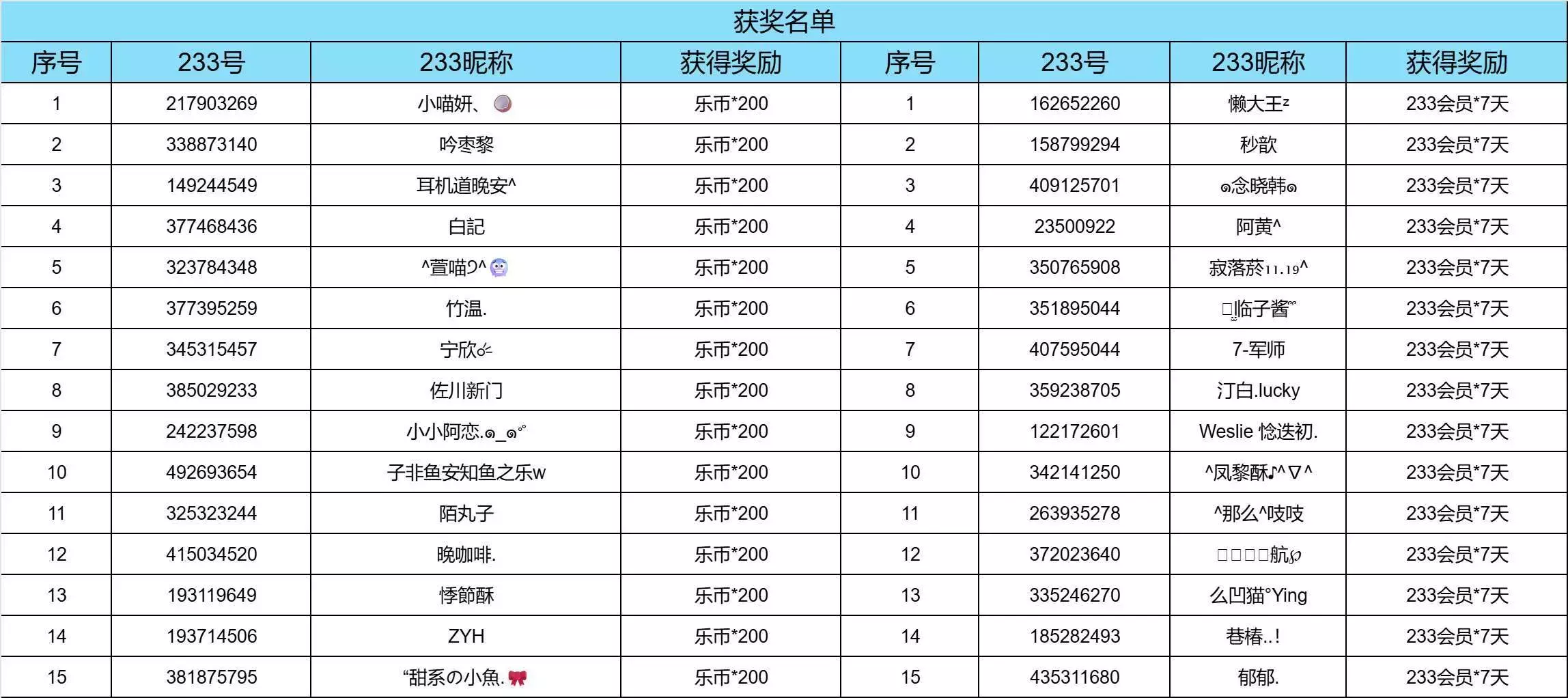 获奖名单公示期3天,若有疑议在公示期间提出,将对有疑议的名单进行重新审查,如有发现问题将进行修改。如果超过公示期没有疑议,以公示期结果为准在次周周五之前发放奖励,届时注意留意个人的233账号!