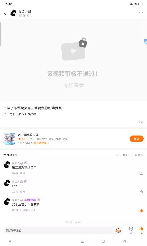 “哈吉园”你这家伙! 第一遍过审第二遍不过审有点意思.233,你又赢了…