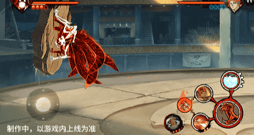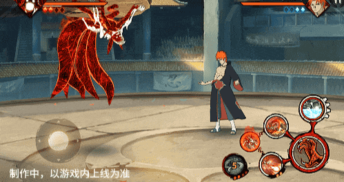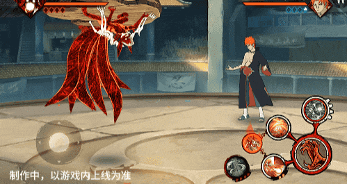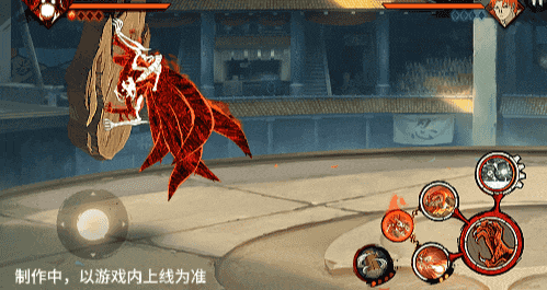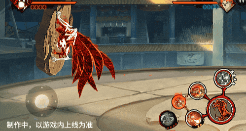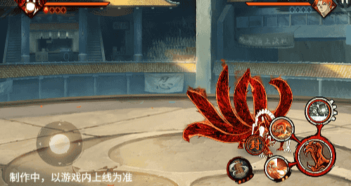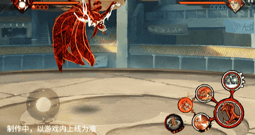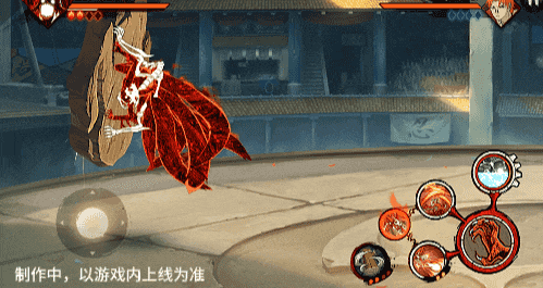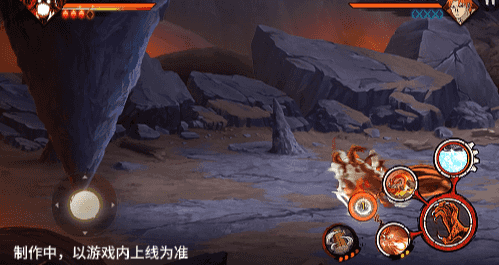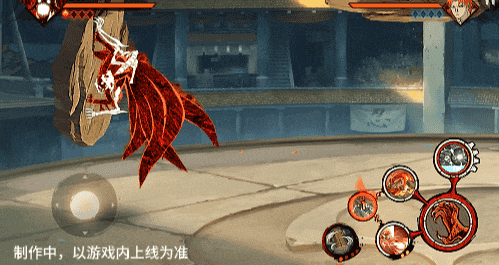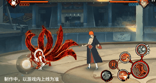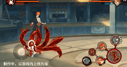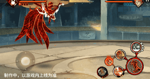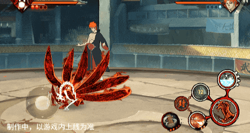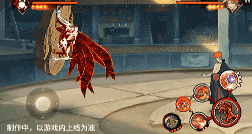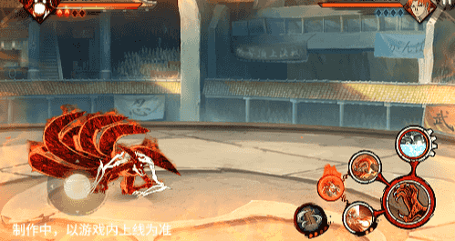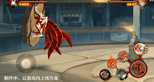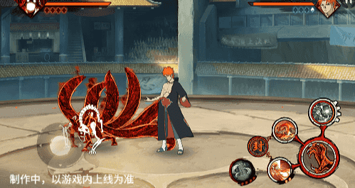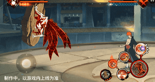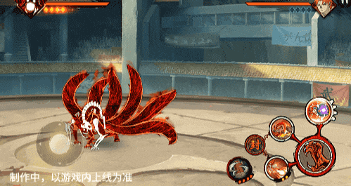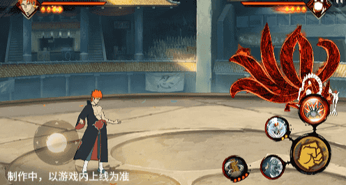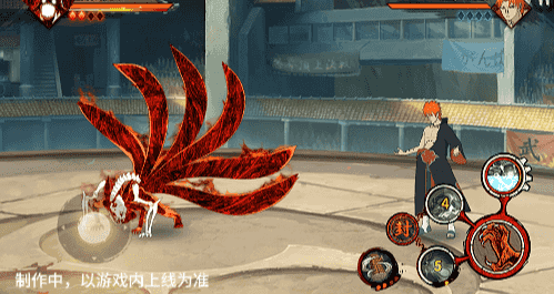 点击子技能前不拉摇杆或左右拉摇杆,会横向破坏场景,六尾鸣人会在敌人被打出场景后追上敌人,起跳连续爪击,最后将敌人从另一侧击飞进当前场景。