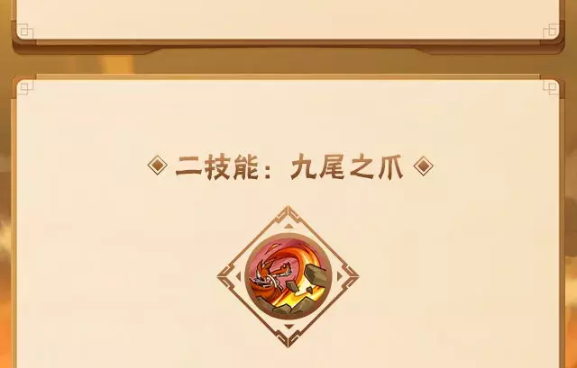 黄条结束前再次点击二技能可释放三段,九尾之爪从地面伸出,举起巨大的石块猛砸敌人,第一下砸中则会将敌人砸进地面,并再连续猛砸两次,若第一下砸空则没有后续。