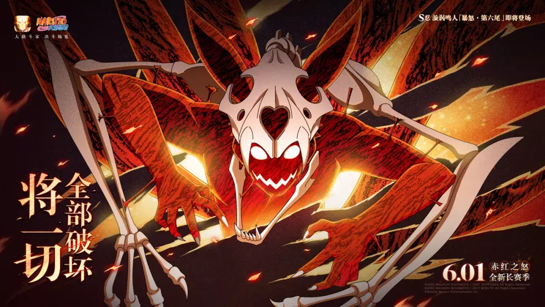 强烈的愤怒让意识失去控制,肆意摧毁所有事物!6月1日,全新长赛季「赤红之怒」开启,S忍漩涡鸣人「暴怒·第六尾」同步登场,敬请期待!