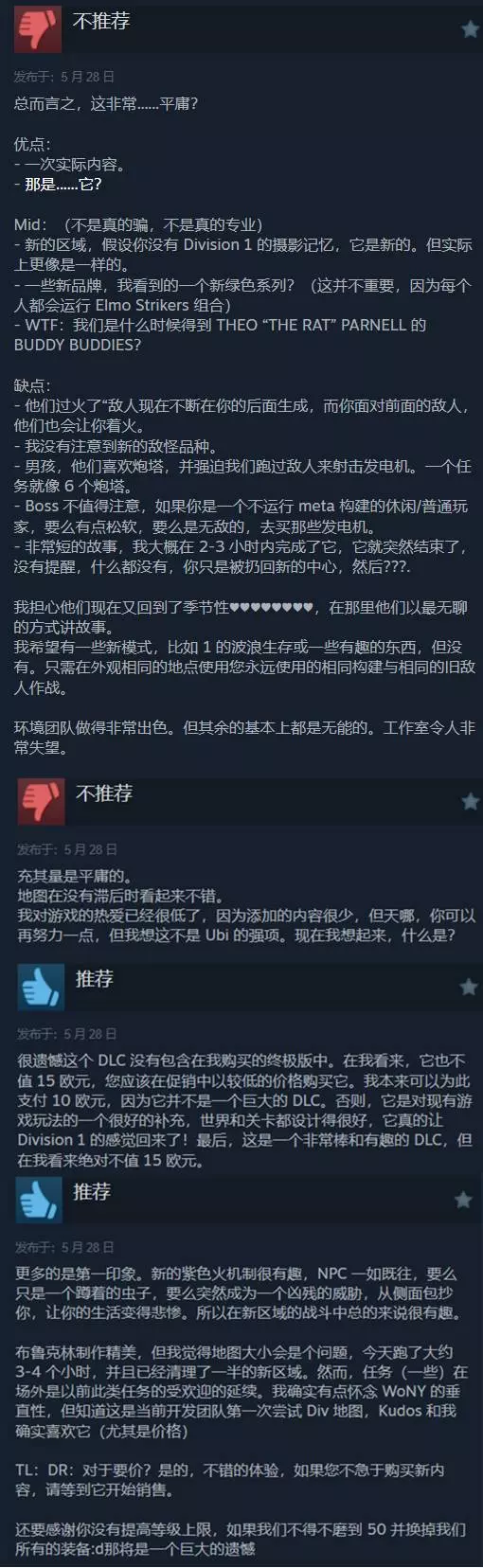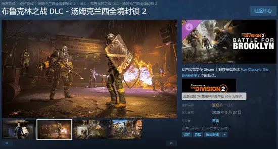 育碧旗下开放世界合作射击网游《全境封锁2》的全新DLC“布鲁克林之战”现已正式上线,截至发稿前,DLC在Steam的评价暂时为“褒贬不一”,好评率为50%。