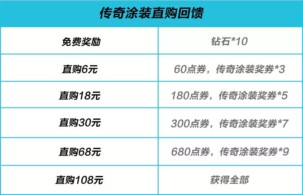 5月30日-6月5日期间,参与活动可免费获得钻石好礼,直购可获等额点券与传奇涂装奖券。
