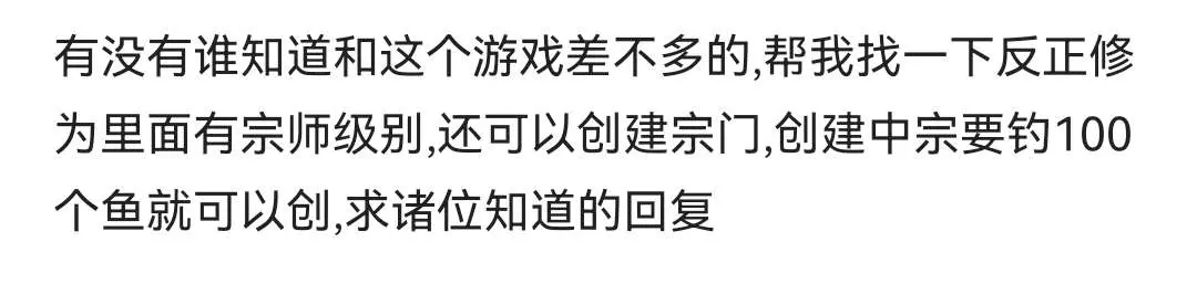 有没有谁知道233和这个游戏差不多的,帮我找一下反正修为里面有宗师级别,还可以创建宗门,创建中宗要钓100个鱼就可以创,求诸位知道的回复