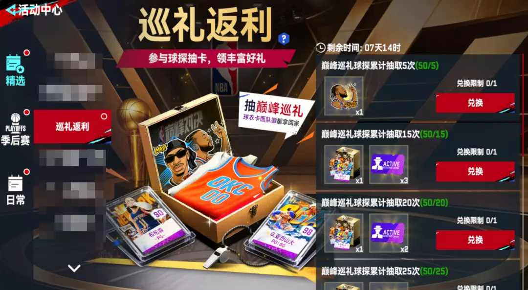 2.卡池配套活动[巡礼返利],参与抽取即可获返利奖励,领取队徽、球员及其卡面、球衣等丰厚奖励!