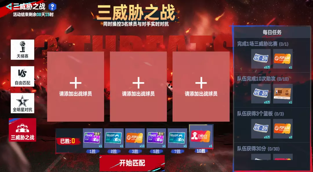 全新限时玩法三威胁模式重磅上线!全新玩法融合了街头全场3V3的激烈对抗与单人操控全队的独特玩法!