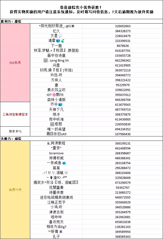🥈失败的阵营不要气馁,桢猪也准备了20份233乐园会员周卡作为安慰奖