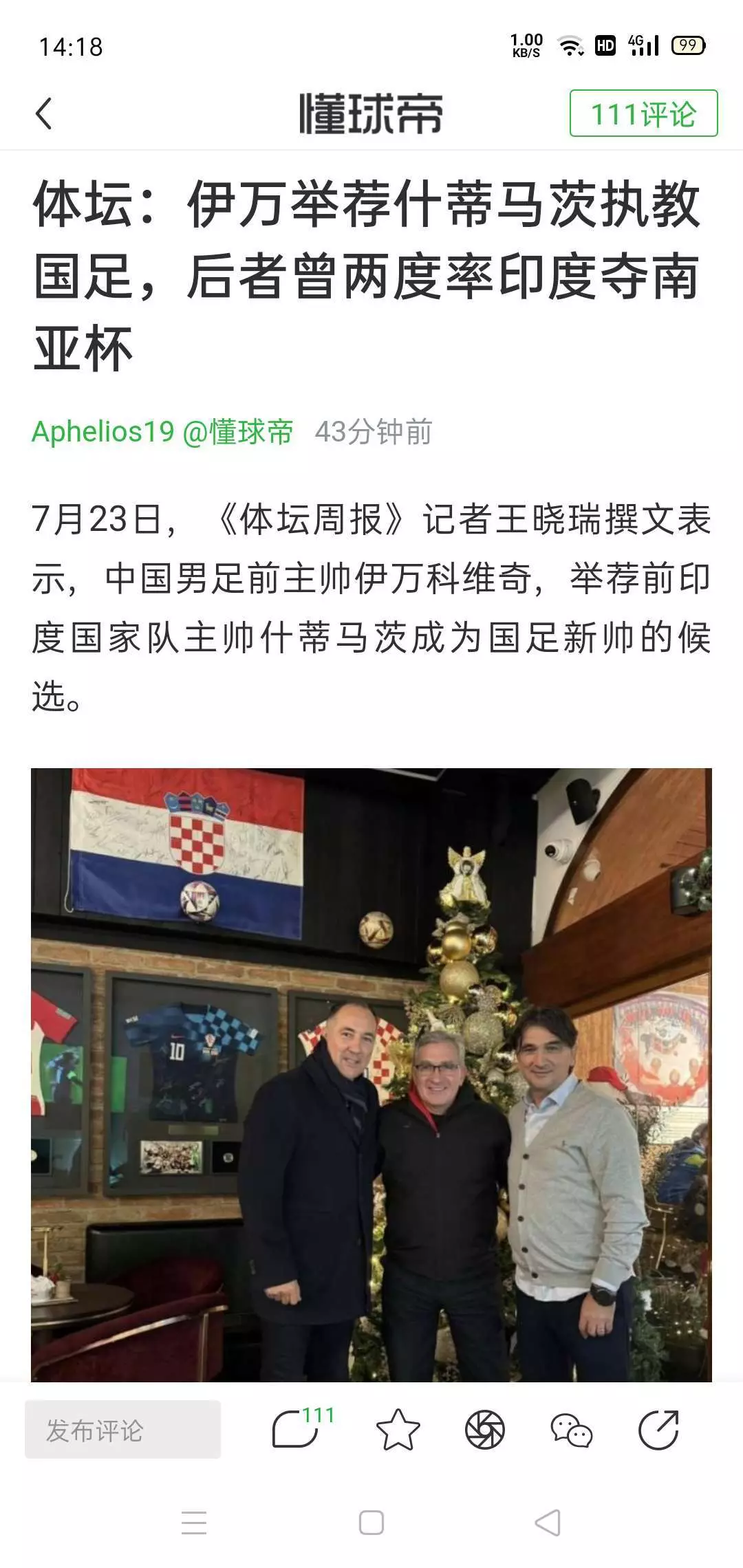 体坛:伊万举荐什蒂马茨执教国足,后者曾两度率印度夺南亚杯