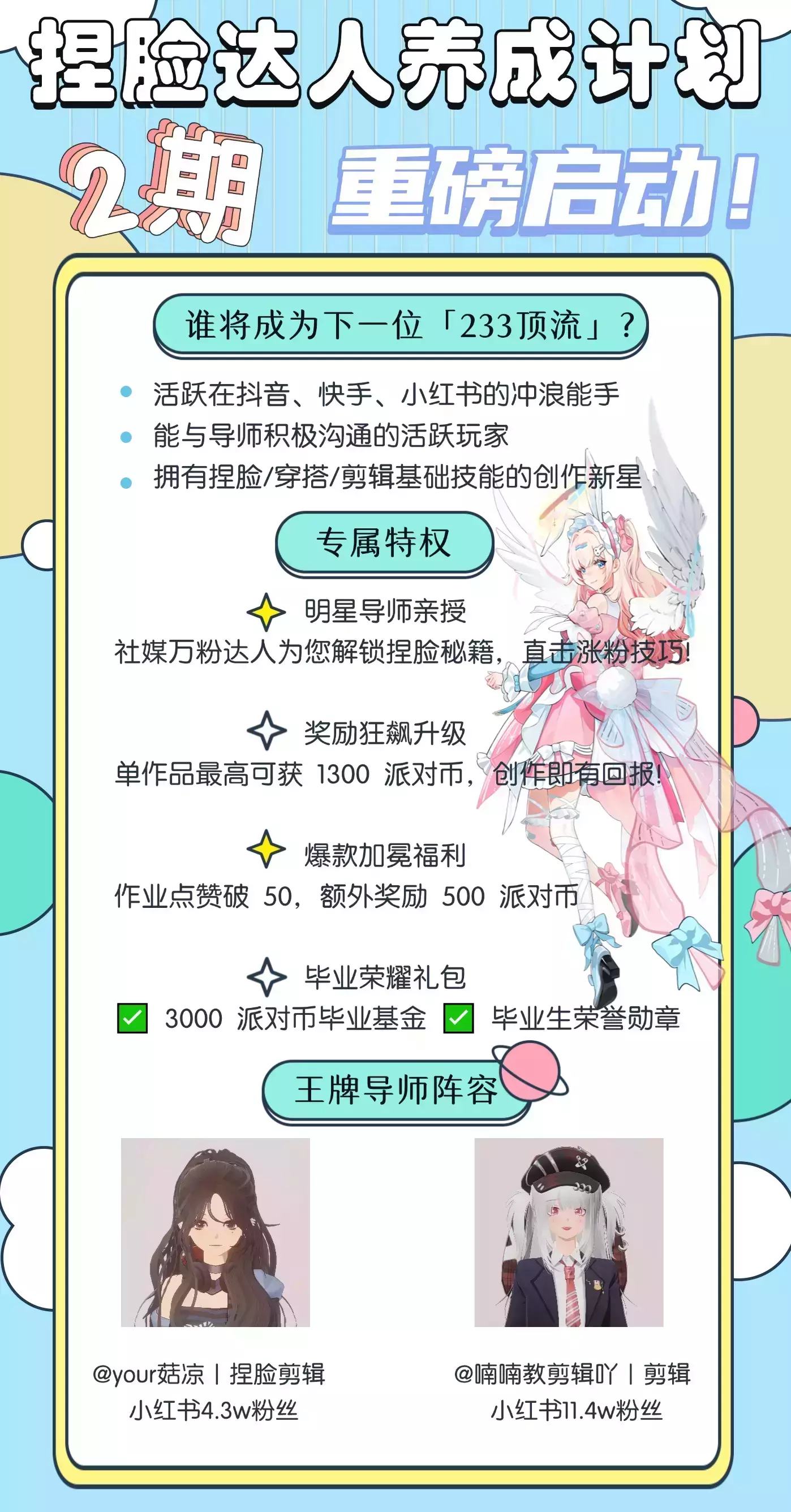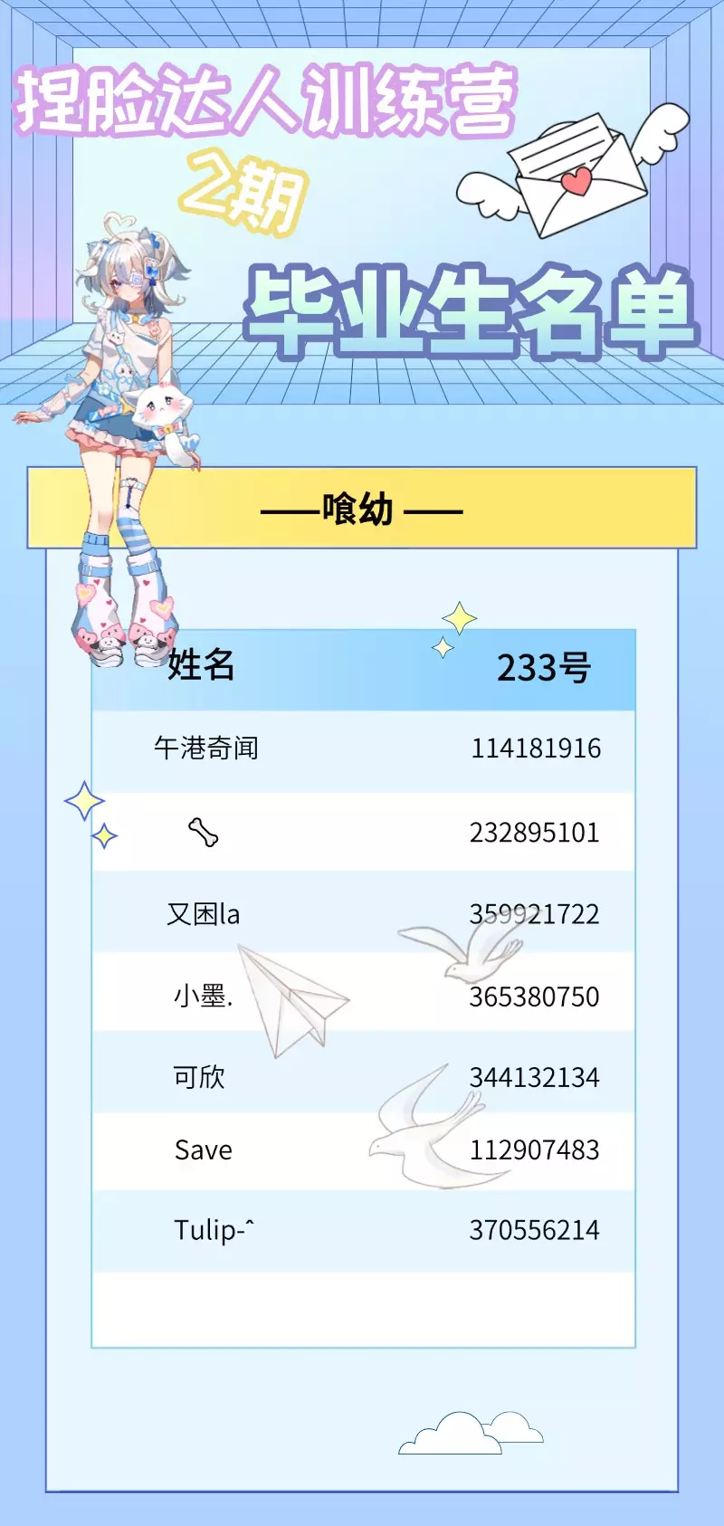 捏脸达人训练营2期正式闭营!恭喜以下学员顺利毕业!233期待你们未来的精彩作品!