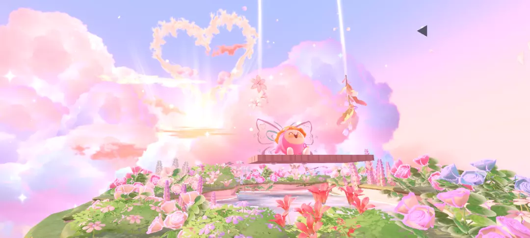 背景真的绝美呀,粉粉嫩嫩渐变色的云朵,中间还是一个爱心形状的云朵呢,真的超级浪漫呀,空中还有一点点小星光,五颜六色的闪闪嘟也超美~