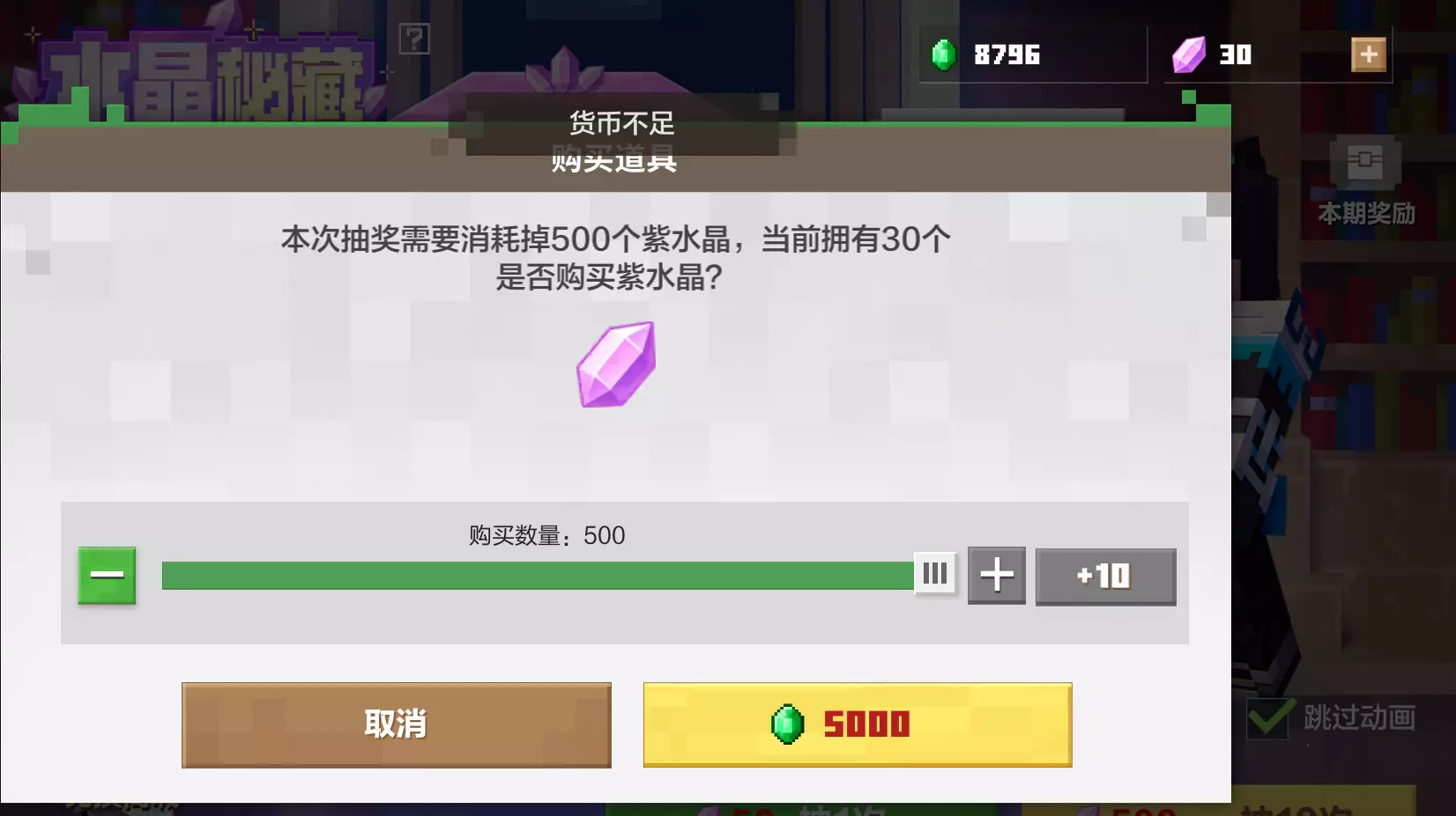 我有8000多绿宝石,为什么不能换500紫水晶啊??