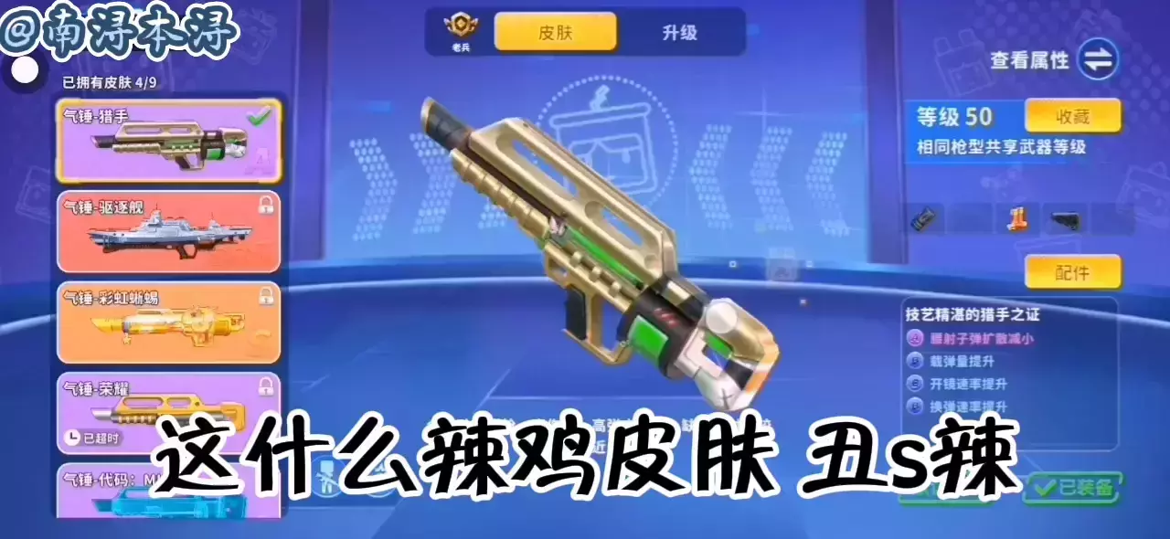 这是一篇《迷你枪战精英》的游戏帖,作者分享了气锤-猎手皮肤,吐槽该皮肤外观难看,还吐槽气锤霰弹枪弹容量少、开火间隔长,同时展示了使用该枪械在中式地图对战的画面,称“迷枪里没有不好用的枪”。