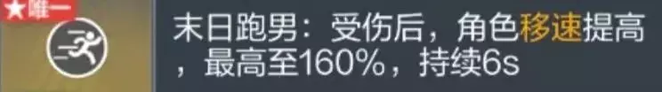 末日跑男:受伤后,角色移速提高,最高至160%,持续6s