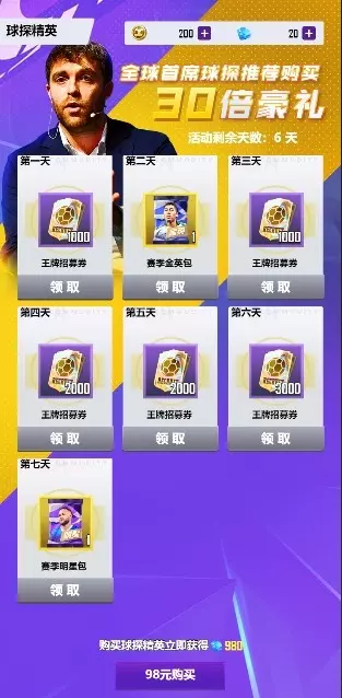 全新“球探精英”正式开启!仅需98元即可解锁,解锁后即可立刻获得钻石*980!